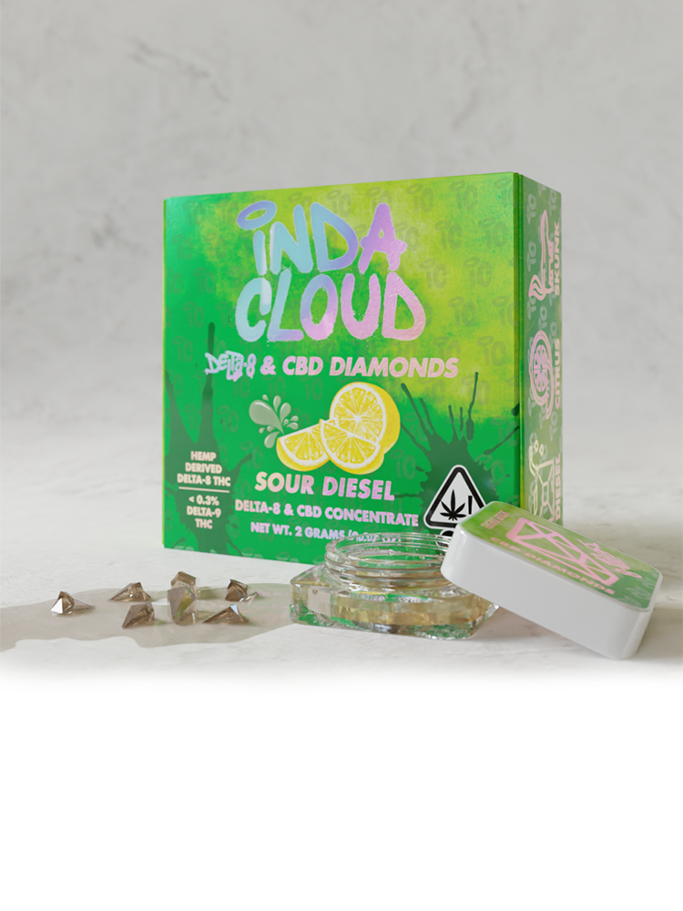 Sour Diesel Delta 8 Diamonds pack a pungent blend of skunk, spice, fuel, and citrus. It’s a Sativa dominant strain that provides your body with the Indica high feeling you crave. It contains one gram of our signature Delta 8 and one gram of premium CBD combined with potent terpenes, all in a two-gram pack.