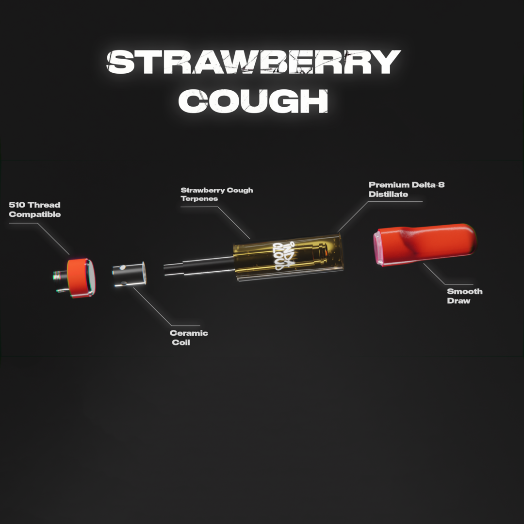 The Strawberry Cough Delta 8 Vape Cartridge is a custom design that focuses on providing a top-tier vaping experience. The cartridge features a ceramic coil, which promotes a smoother, cleaner draw compared to traditional metal coils and helps to preserve the vape oil is authentic flavor. The cartridge is also designed for compatibility with 510-threaded vape pens, making it versatile and user-friendly. Additionally, the child-resistant packaging not only ensures safety but also maintains the cartridge's integrity and freshness. The custom design embodies Indacloud's commitment to quality, safety, and user experience.