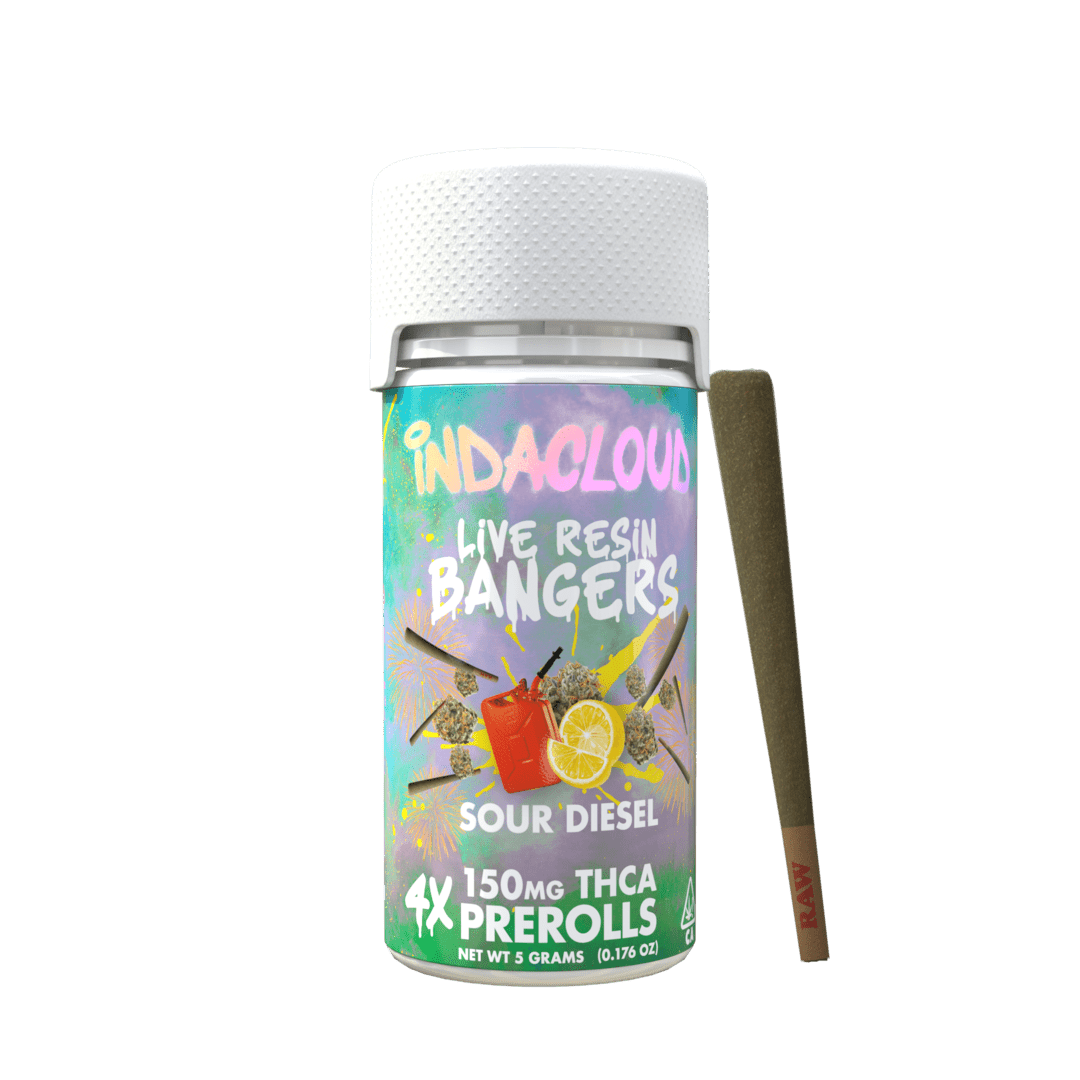 Prepare to be blown away with our latest and greatest pre-roll creation. These Live Resin Bangers are pure THCa Sour Diesel joints. This insanely popular strain known for its energizing and fast-acting Sativa effects is amplified to the next level in these absolute Bangers. Each pack contains 4 pre-roll bangers weighing over 1.25 grams each! Other than experiencing explosive effects, you can expect the flavor of a pure quality diesel flower with a lemony haze scent to back it up.