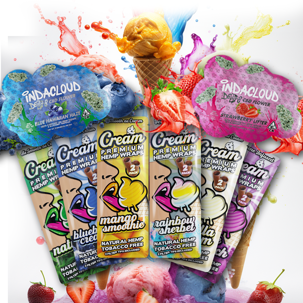 We get it, some of y’all are just better off doing it yourself. I mean hey, you definitely know how to roll the perfect blunt so why not get your flower and papers all in the same bundle? There is no better mix than our world famous Cream Hemp Wraps combined with the award winning Strawberry Lifter or Blue Hawaiian Haze flower. So grind, roll, light, and inhale the perfect flavorful high, brought to you by Indacloud and Cream Hemp Wraps.