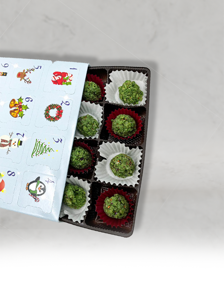 Because you’ve been soooo good this year, Santa has something extra special just for you! Because you are on the Nice List, you’re getting 1,250 mg of THC to wrench out of your stocking. Enjoy our Chocolate Nug Advent Calendar, Fruit Punch Gummies, White Chocolate Peppermint Cereal Treat, and our Strawberry Colada Dope Rope. These are all sativa edibles, making it the perfect bundle to unwrap on the big day