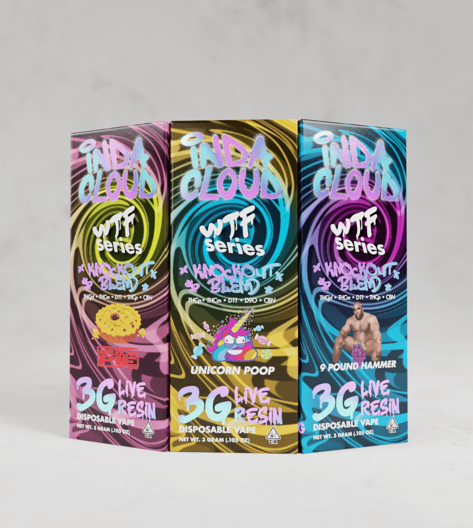 The only thing a large naked man, unicorn poop and American Pie have in common is the statement that will come out of your mouth… “WTF?” This new series is appropriately titled WTF not just for its wacky flavor and strain combinations but for the incredibly strong mix of cannabinoids used in our Knockout Blend. We’ve pushed everything about this series to the absolute limit, with absurd names, crazy strong effects, and our first ever 3-gram disposable. Each of these 3 WTF series disposable vapes now come with 3 grams of our custom formulated and ultra strong Knock-out Blend, containing rare and potent cannabinoids such as THCjd, THCm, D11, THCP and CBN.